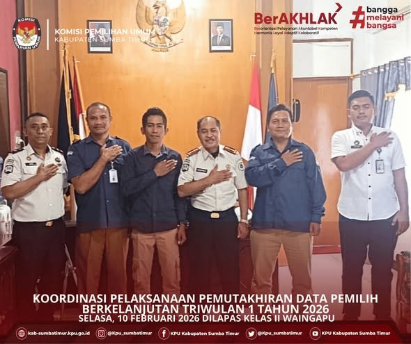 Waingapu - Pada hari ini Selasa, 10 Februari 2026 Anggota KPU Kabupaten Sumba Timur Divisi Perencanaan, Data dan Informasi (Muhammad Naufel Algadrie) bersama Anggota KPU Kabupaten Sumba Timur Divisi Sosialisasi, Partisipasi Masyarakat, Pendidikan Pemilih dan SDM (Elvensias Umbu Maramba Awang) melakukan koordinasi bersama Kepala Lembaga Pemasyarakatan (LAPAS) Kelas II A Waingapu.