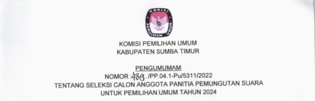 Pengumuman Nomor : 489/PP.04.1-Pu/5311/2022 tentang Seleksi Calon Anggota Panitia Pemungutan Suara untuk Pemilihan Umum Tahun 2024