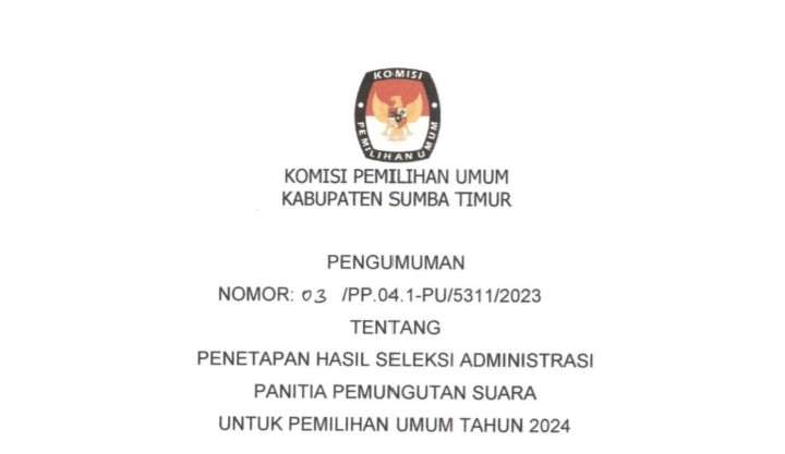 Pengumuman Nomor : 03/PP.04.1-Pu/5311/2022 tentang Penetapan Hasil Seleksi Administrasi Panitia Pemungutan Suara untuk Pemilihan Umum Tahun 2024